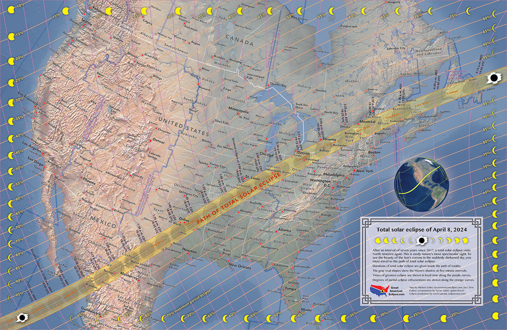 But in 2024, there will be a second Great American Eclipse, and although it can be viewed as a partial eclipse from even more landmass than the 2017 version, I won’t be riding all of those many states, content instead to pedal the far-more-manageable 4545 miles (7316 kilometers) of the path of totality from Mazatlán, Mexico to Bonavista, Newfoundland.
