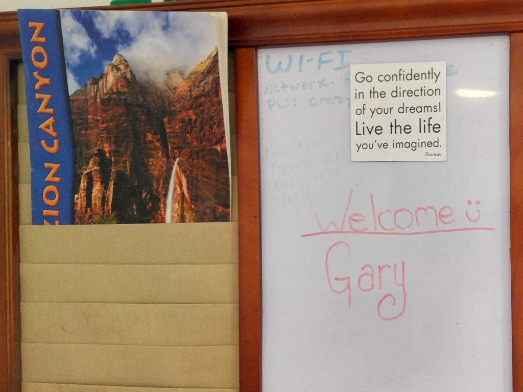 (Photo: I’ve no independent recollection of who left that sweet note of welcome. But Google recorded the when and where of it, and I wrote a long journal entry that night. And from those and the context of other photos, I was able to reconstruct which lovely soul welcomed a wayward astronomer into her home that October day in 2016. Thanks again, Lucy.)